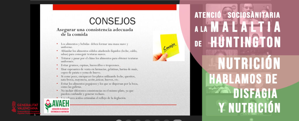 En los talleres de esta semana hemos aprendido, junto con Antonia Campolongo, la disfagia en Enfermedad de Huntington y qué tipo de alimentos son los más adecuados para ingerir fácilmente.
